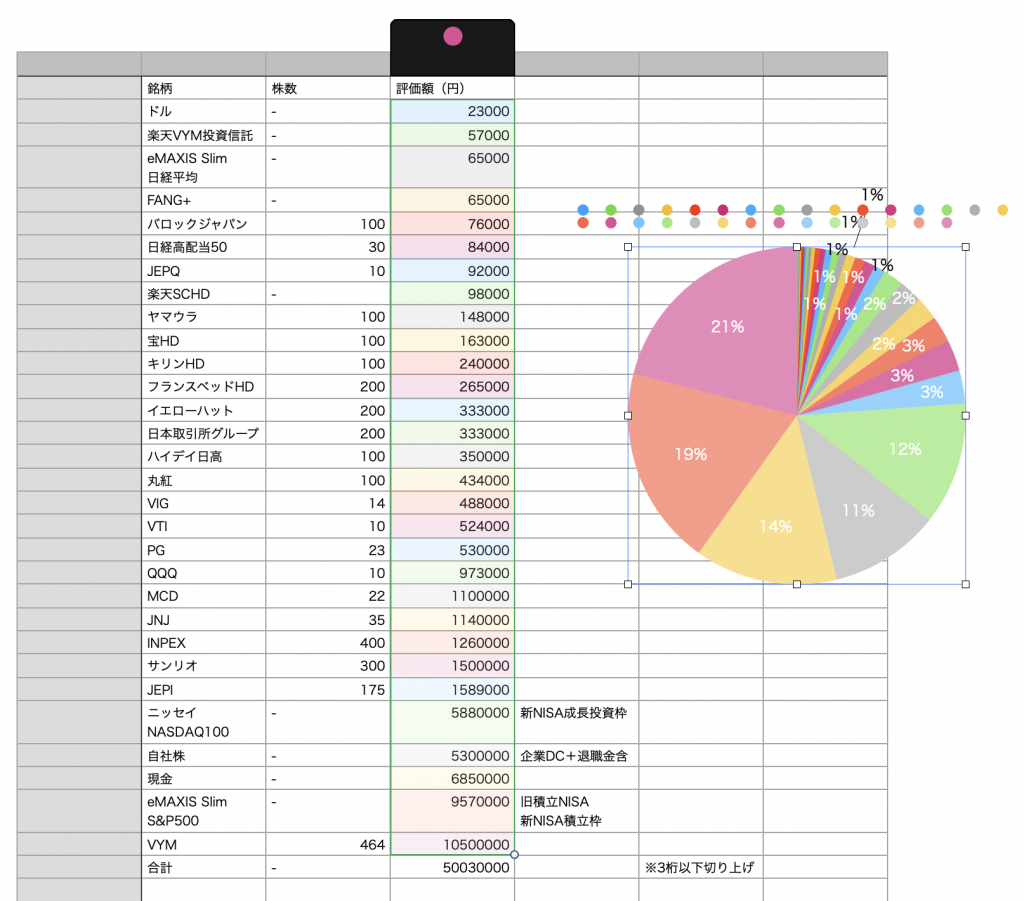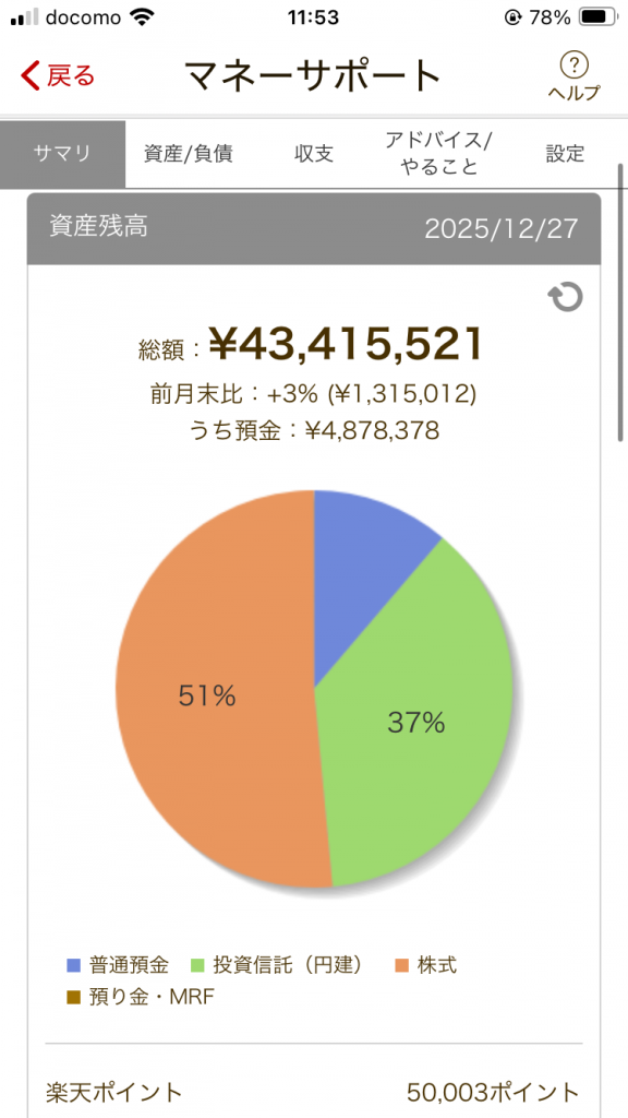 企業DCや退職金予想なども含めてですが、5000万円の大台に乗りました。アッパーマス層から準富裕層へ。